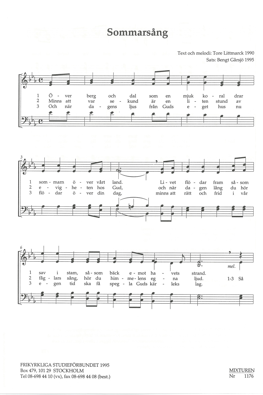 SATB, piano, flöjt, gitarr, kontrabas och oboe 1 & 2